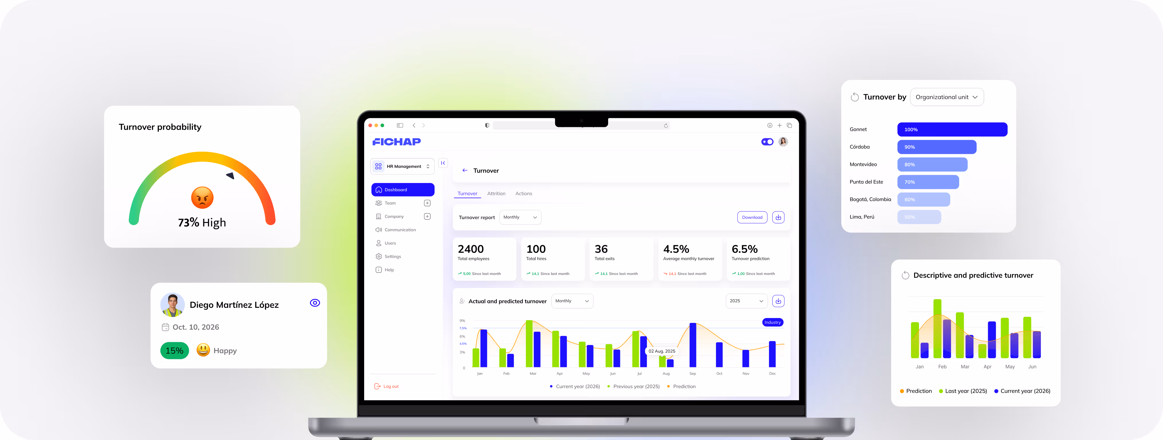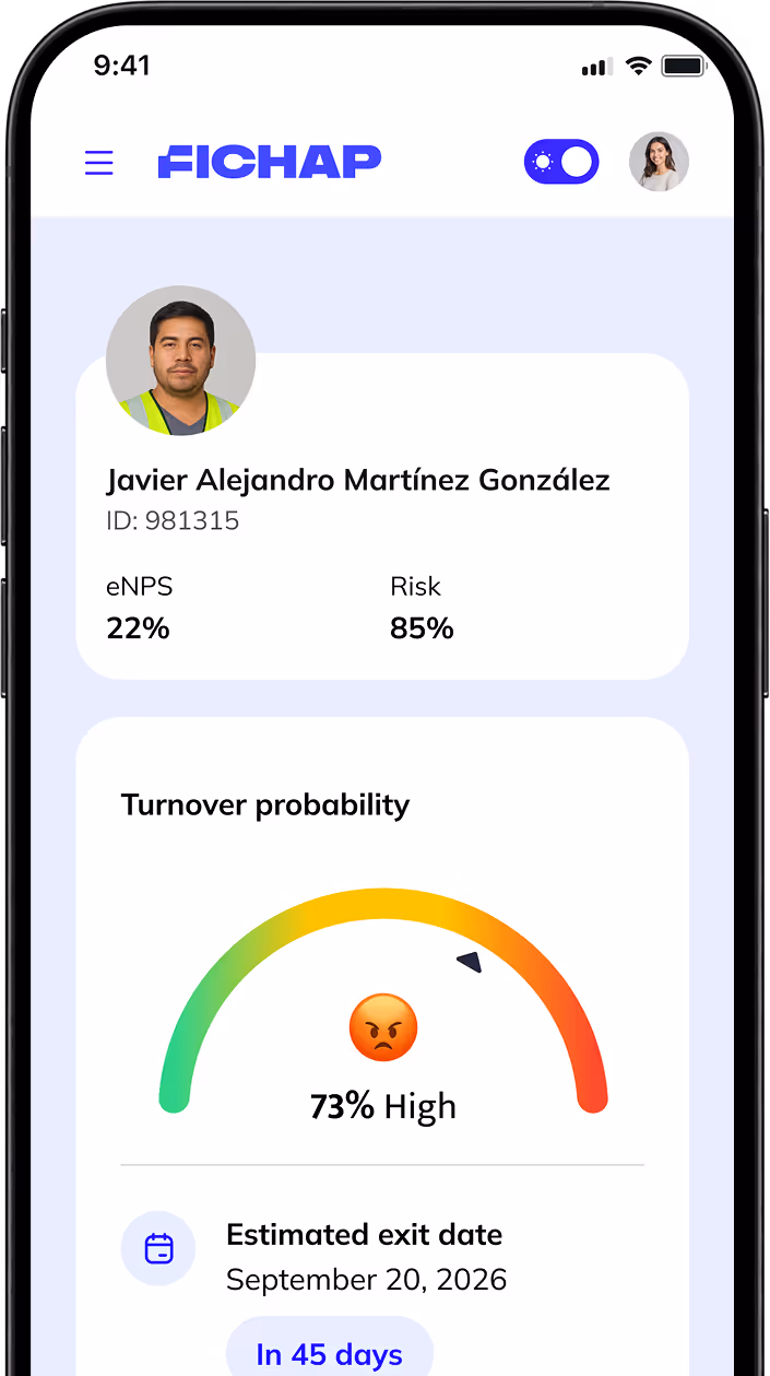 Our predictive AI analyzes attendance patterns, performance and employee sentiment to anticipate turnover. It identifies who might leave, when and why, so your HR team can take action early and retain key talent.