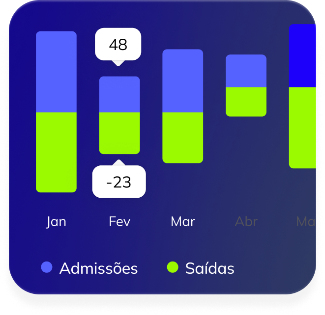 Nossa IA preditiva analisa padrões de presença, desempenho e clima organizacional para antecipar o turnover. Ela identifica quem pode sair, quando e por qual motivo, para que o RH aja a tempo e retenha os talentos mais importantes.